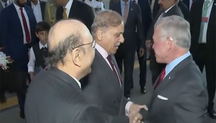 اردن کے شاہ عبداللّٰہ پاکستان کے 2 روزہ دورے پر اسلام آباد پہنچ گئے، صدر آصف زرداری، وزیر اعظم شہباز شریف نے ہوائی اڈے پر شاہ عبداللّٰہ کا استقبال کیا۔