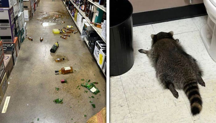 ورجینیا: اسٹور میں راکون کے ہاتھ شراب کی بوتل لگ گئی، واقعے کی تصاویر وائرل