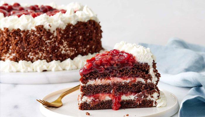 بلیک فاریسٹ کیک دنیا بھر میں پسند کیا جانے والا ایک مشہور کیک ہے۔ یہ چاکلیٹ اسپَنج، وِہپڈ کریم اور چیری سیرپ کی تہوں پر مشتمل ہوتا ہے جس کی اوپری سطح کو چاکلیٹ شیوِنگز اور چیری سے سجایا جاتا ہے۔
